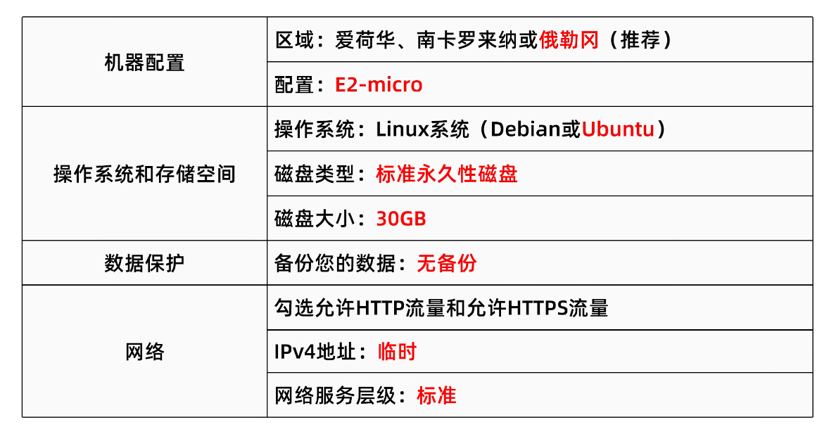 4. 存储空间:标准永久性磁盘 30GB (数据保护 - 快照时间表,要改为“无备份”,否则会收费)