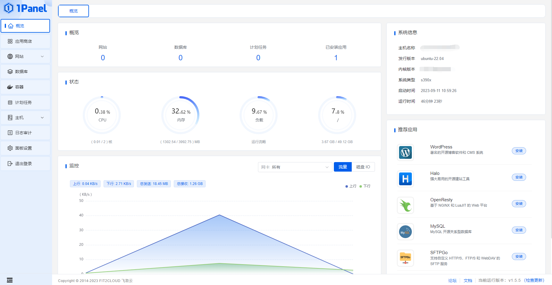 iptables-save然后开始安装1Panel,直接根据官网的一键指令就行
