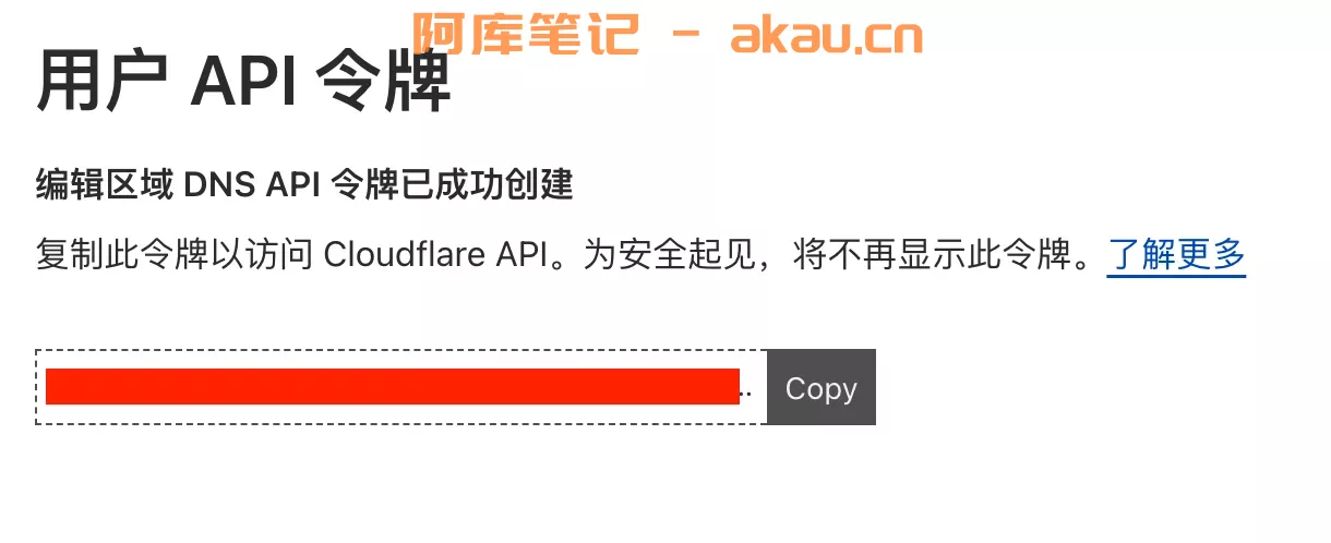 !!!!注意:令牌只显示一次,自己保存好,如过忘了就重复上面的步骤重新来过。