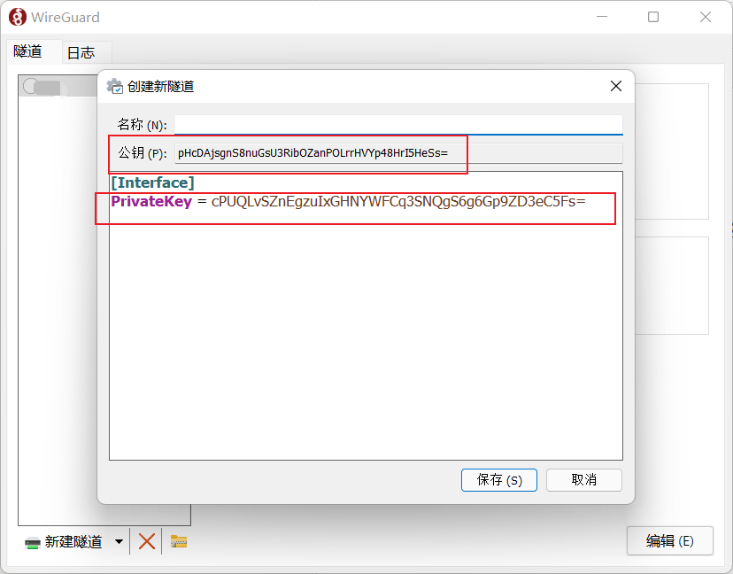 我们需要借助一下别的客户端生成一下peer的秘钥,以Windows版wireguard软件为例: